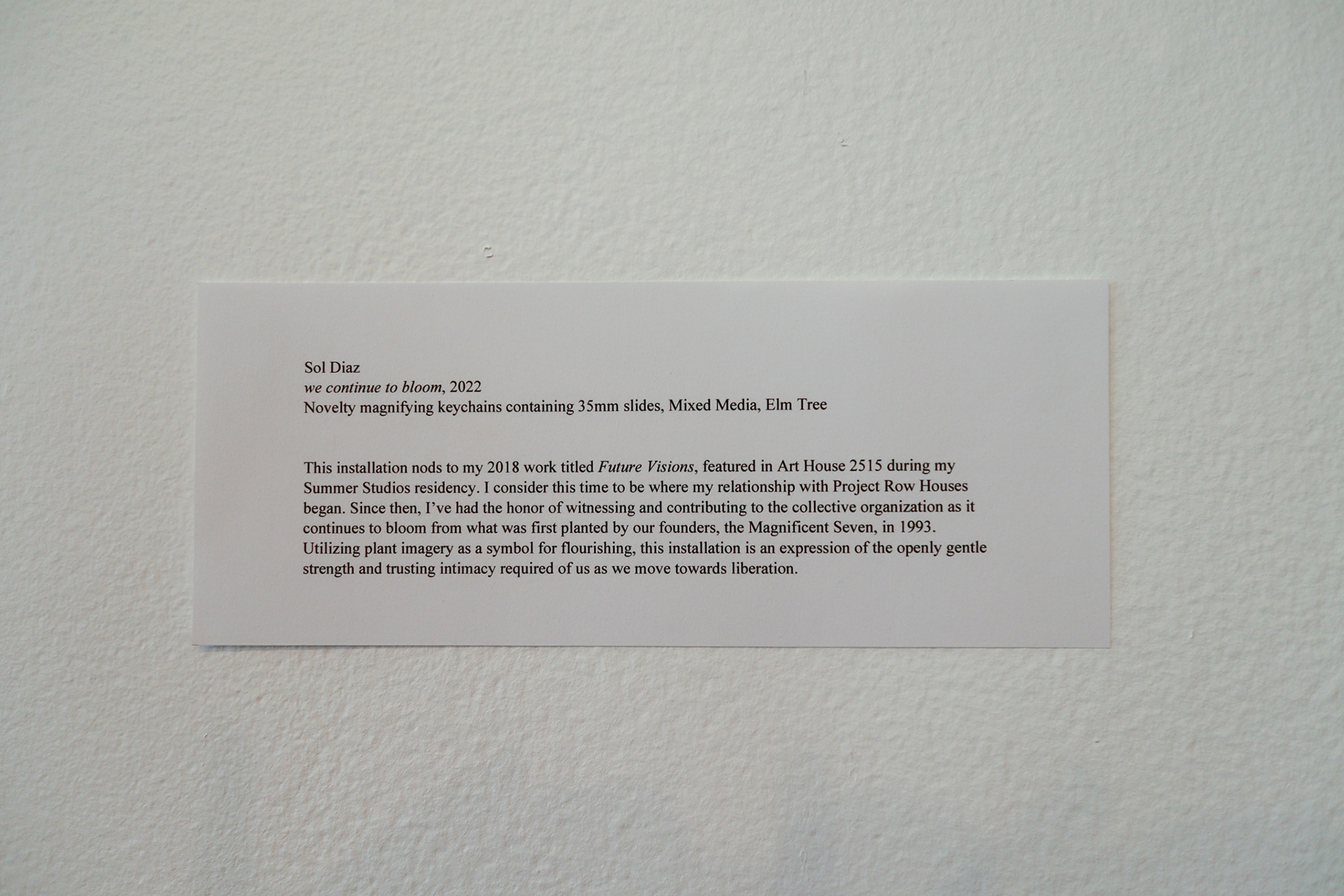 In this inaugural show, we celebrate the jaunt each artist journeyed to the Row. Through painting, sound, video, and multimedia storytelling, each artist shares their history, memory, and roots. Together, these works intertwine and continue the tradition of Project Row Houses as a living social sculpture – creating art in community with one another and shaping the world around us.